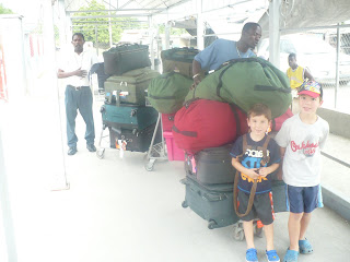 | The boys and bags in Haiti minus Eric who we left behind with another cart loaded with bags. |